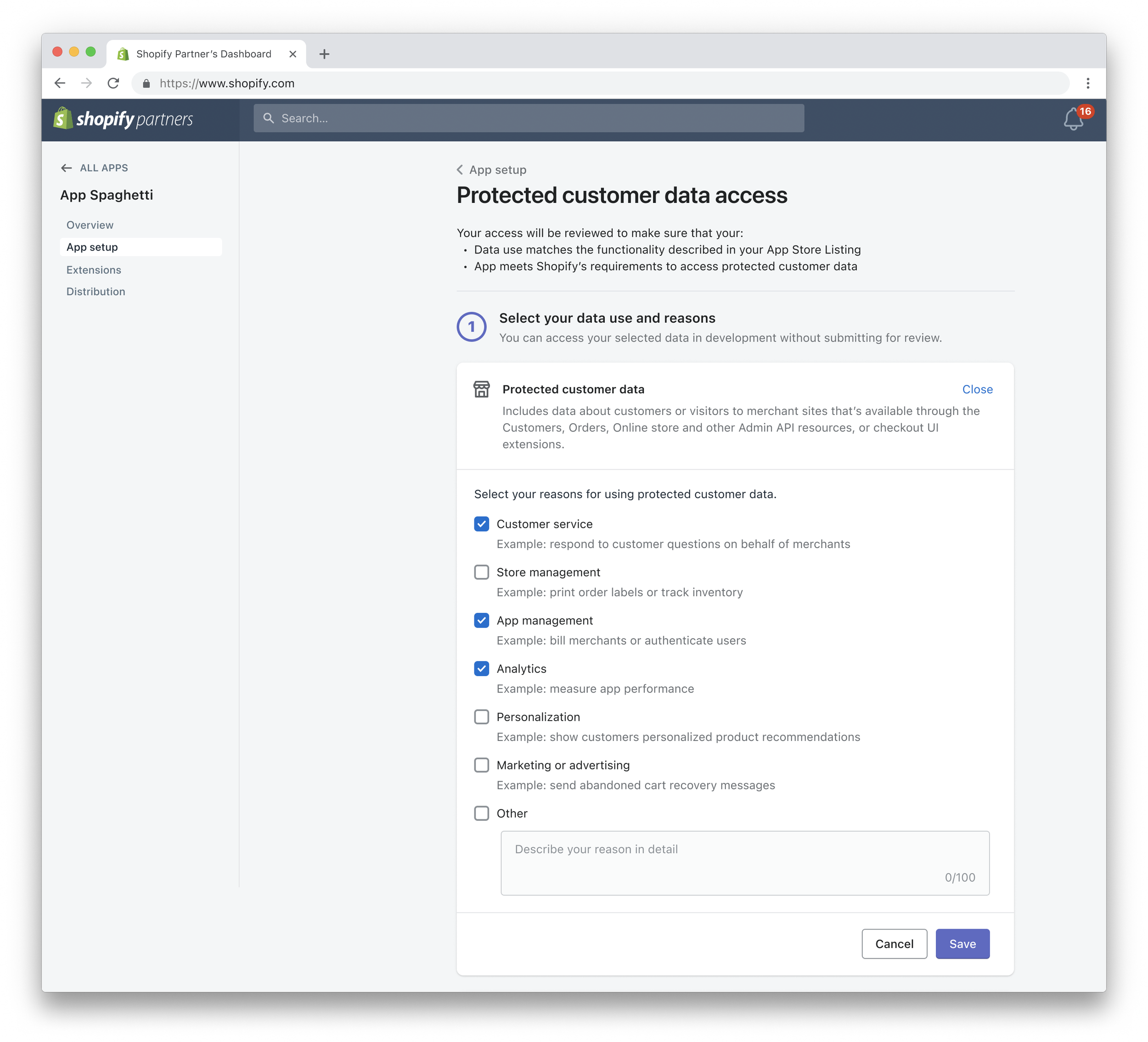 Since customer data is available across 15+ API scopes and 30+ API resources, it wasn’t sustainable for developers to request access to individual scopes or resources.